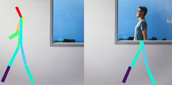 然后,研究人员将其转化为一个木棍形的图形,这能显示一个人在墙后移动的细节。