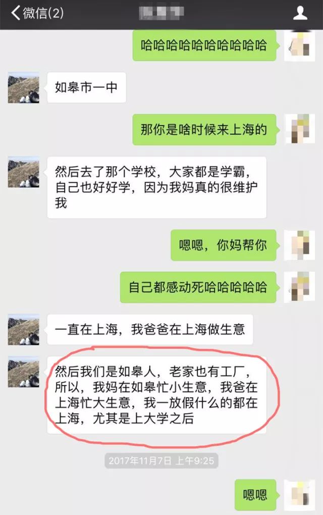 上面那个在英国留学,住着别墅,家产遍布如皋跟上海的“白富美”,就是这位↓