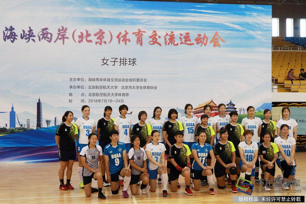 7月21日,海峡两岸(北京)体育沟通运动会女子排球比赛在北京航空航天大学沙河校区体育馆举行,图为女排参赛队员们合影留念。千龙网 姜雪峰 摄