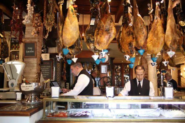 去过西班牙都会知道,最local的景色是挂满油亮火腿的小酒馆。走在路上不用抬头,只要闻到芬芳咸香,就知火腿靠近了。