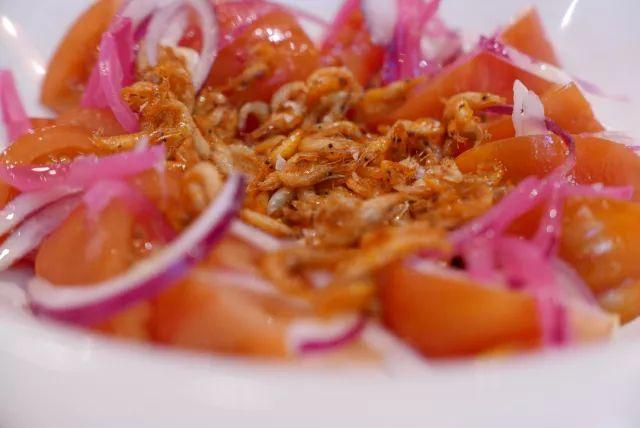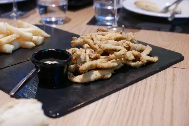 金枪鱼的不如预期,反倒让另两道小海鲜显得出彩:番茄沙拉配盐渍小虾、炸小乌贼配海味美乃滋。前者不仅在色泽上充满了西班牙式的饱和度,在口感上也有着海洋的咸鲜及日光赋予番茄的浓郁酸甜;后者则更为惊喜,小手指粗细的小乌贼用葡萄牙传统天妇罗的方式炸至酥脆,蘸着同样有海鲜成分的美乃滋,根本停不下来。