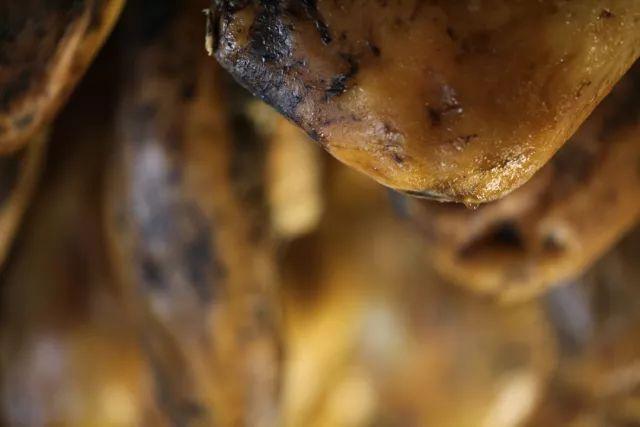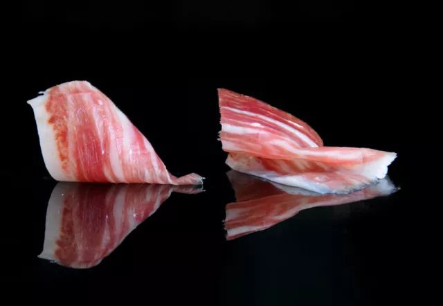 薄若蝉翼的肉身,颜色赭红透光,布满乳色蛛网油花,散发浓郁干香与细致榛果香,入口溶于舌尖,风味沾满味蕾,久久不散。