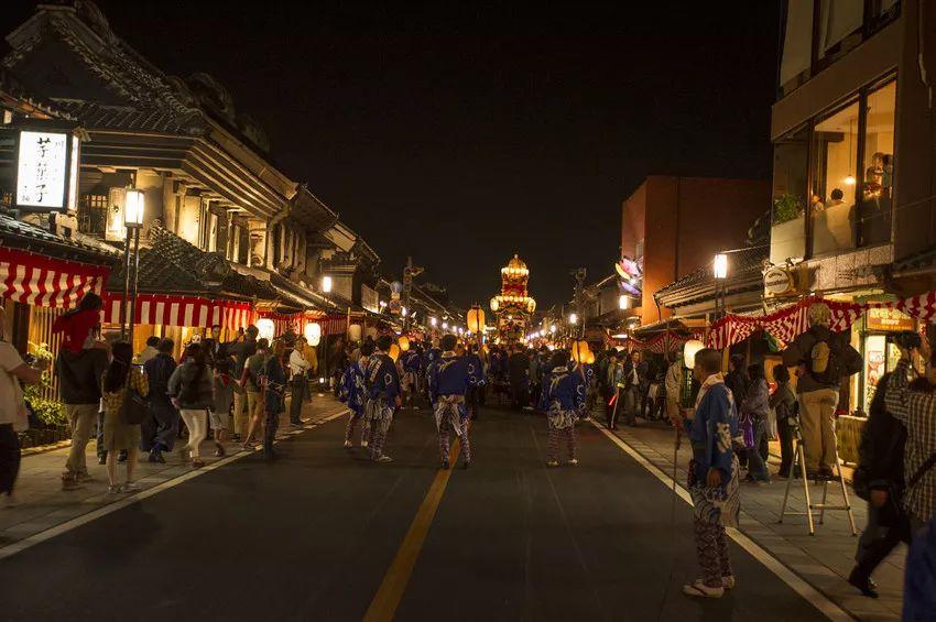 「川越祭」始于十七世纪中(1648年),也是日本的无形民俗文化财之一,每年10月第三个周末假日就是传统的传承日,豪华的山车──神轿在江户藏造町街中来回巡行,火力十足吸引四方游客屏气凝神。