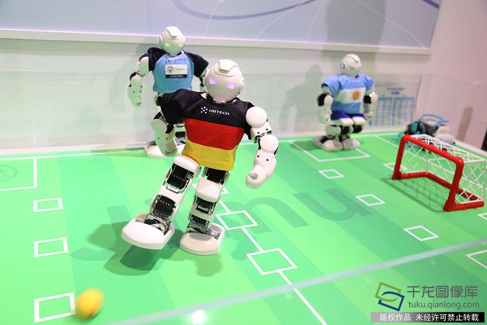 2018世界机器人大会于8月15日至8月19日在北京亦创国际会展中心举行。图为踢足球机器人。千龙网记者 陶国琪 摄