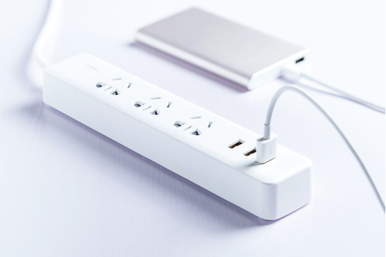 记忆中的插座就是那种长长的,还特别占空间的长方体,使用时间一长,桌面上一定会非常繁乱,甚至有时会因为插头体积不一样发生插头“打架”的情况。