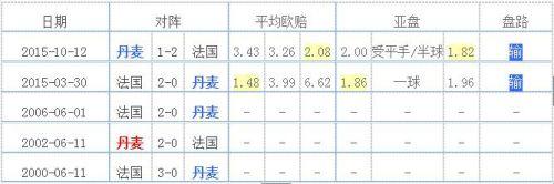 丹麦VS法国: 1胜4负