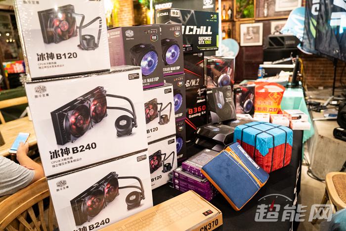 现场发现了还有酷冷至尊、九州风神的机箱以及水冷散热器,RGB电竞主机果然很酷炫