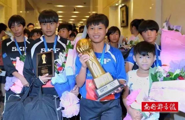2015年7月20日下午16时,荣获2015年“哥德堡杯”世界青少年足球锦标赛U12女子组冠军的琼中女足载誉归琼,在海口美兰机场受到社会各界人士热烈欢迎。她们最小11岁,最大12岁。