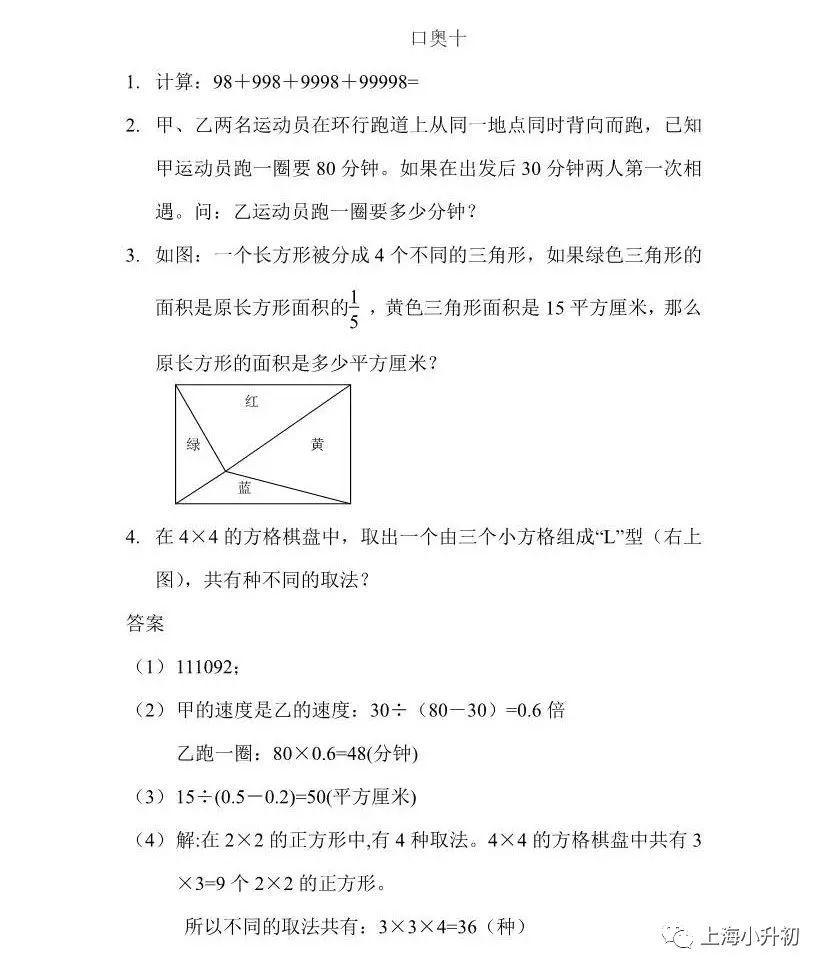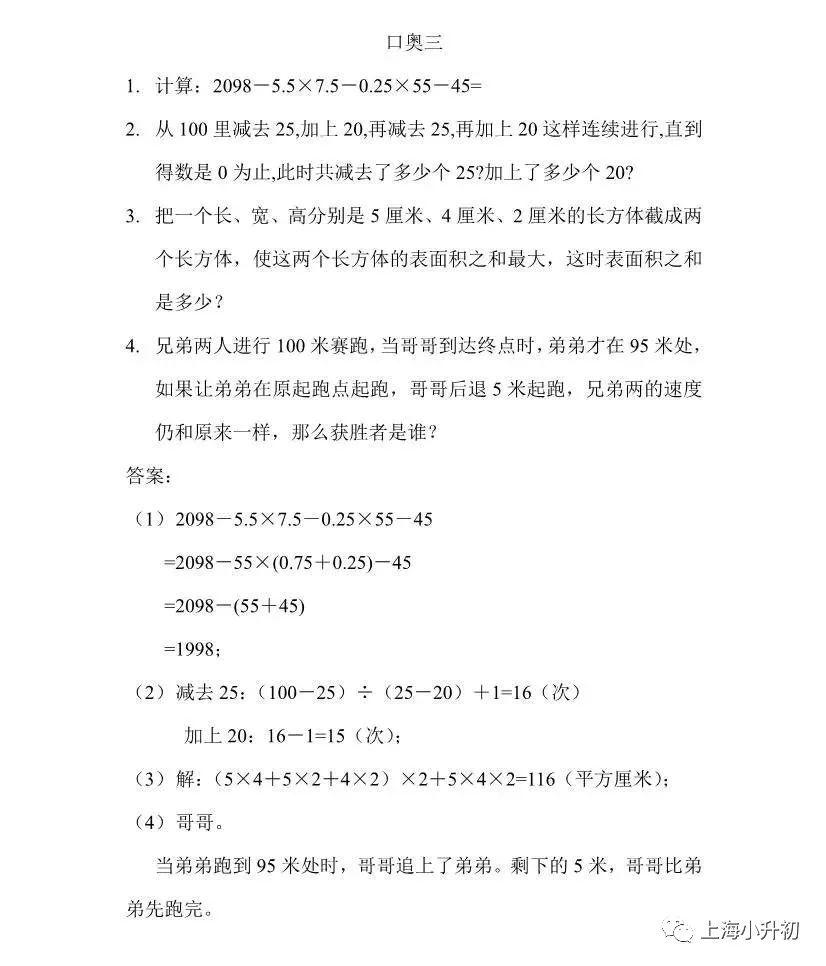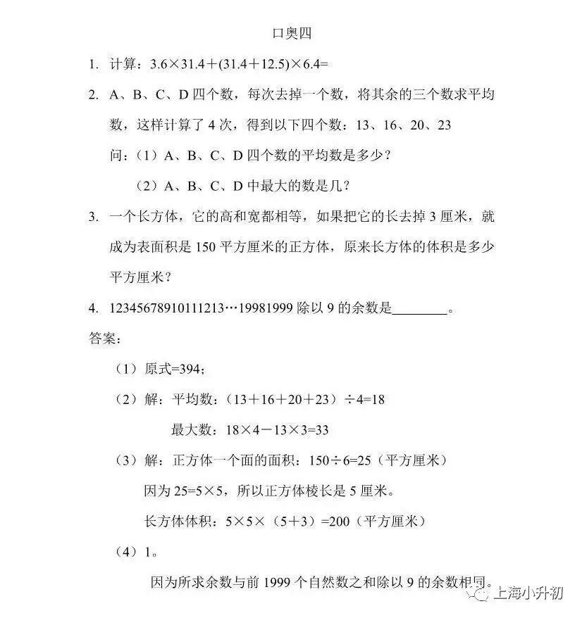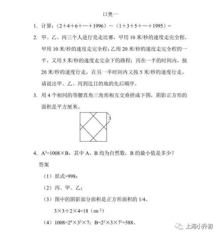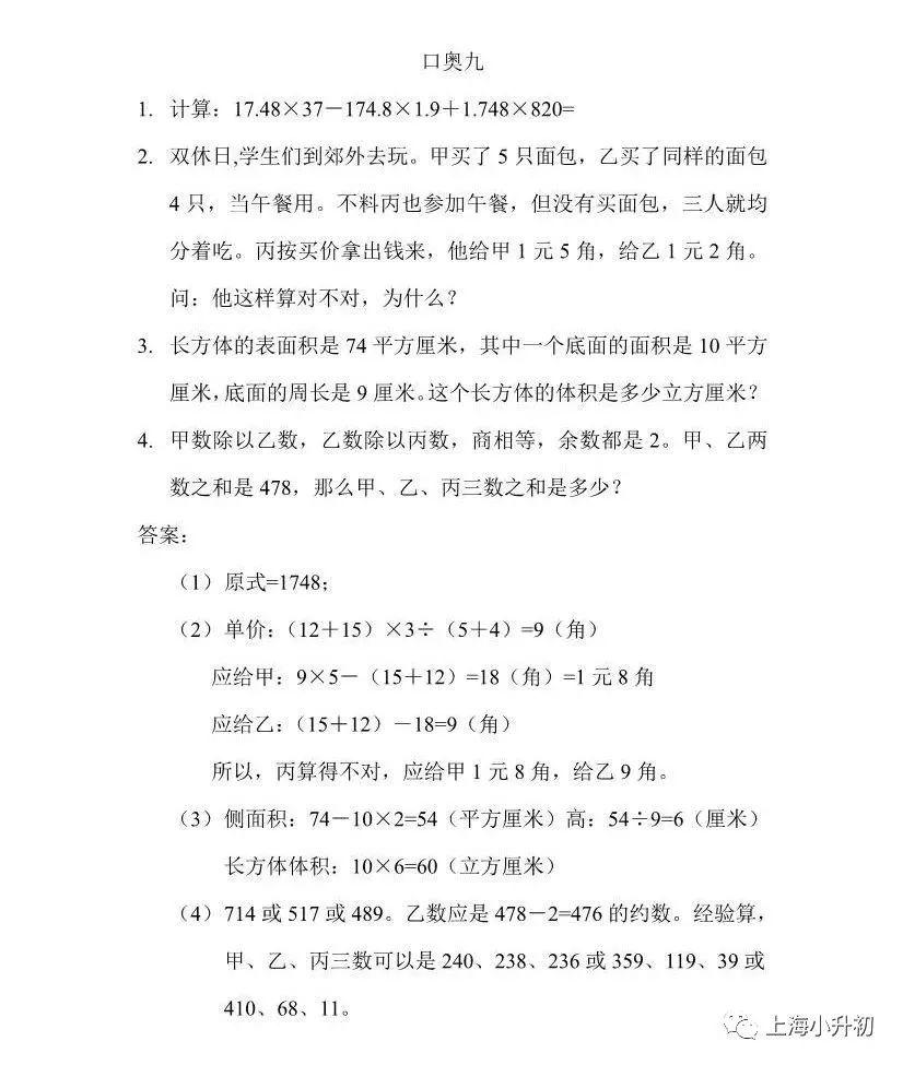 数学有四道口奥题(只说解题思路);