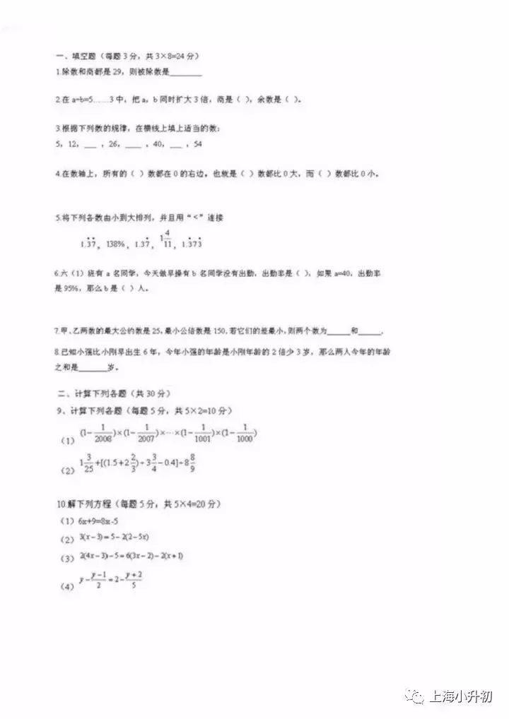 下面是孩子回忆的数学&综合卷的题目,貌似不难。