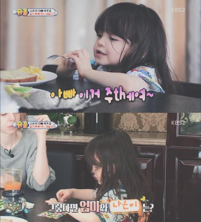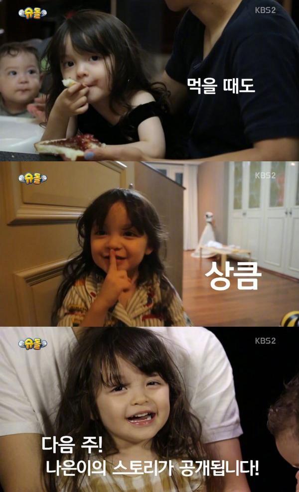 是啦,这一次节目的收视率暴增,要归功于这个四岁的韩瑞混血小萝莉——朴娜恩。
