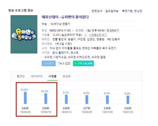 最近,韩国一档亲子真人秀节目《超人回来了》,很火,收视率也吓死人,从8.2%一路飙升到12%。