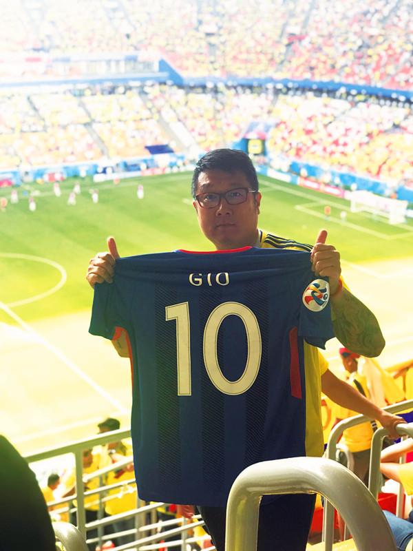 当去年俄罗斯世界杯官网第一轮盲选售票时,沈闻涛毫不犹豫地选择了哥伦比亚在萨兰斯克对阵日本队的比赛。当时莫雷诺仍在哥伦比亚的集训名单中,身披20号战袍,但是遗憾的是,这位申花队长在世界杯开始前的最后一刻落选,这多少让远隔重洋的上海申花球迷有些心疼和难受。他们中的许多人,因为莫雷诺,选择了哥伦比亚队作为主队,沈闻涛也是其中之一,“我这次网上抽签选择球票,第一个选择的就是哥伦比亚在萨兰斯克对日本队的比赛。当时还是非常希望我们的队长能够进世界杯的大名单,完成他的梦想,也是每个申花球迷的梦想,但可能最后因为伤病的原因,最终没能入选……”即使如此,他还是在比赛当日穿上了哥伦比亚20号球衣,并给女儿穿上了申花10号球衣。“我虽然穿着哥伦比亚的球衣,但是向外界传递的是来自上海的友好信号——在上海,也有一群和我一样的申花球迷一起支持哥伦比亚队。”