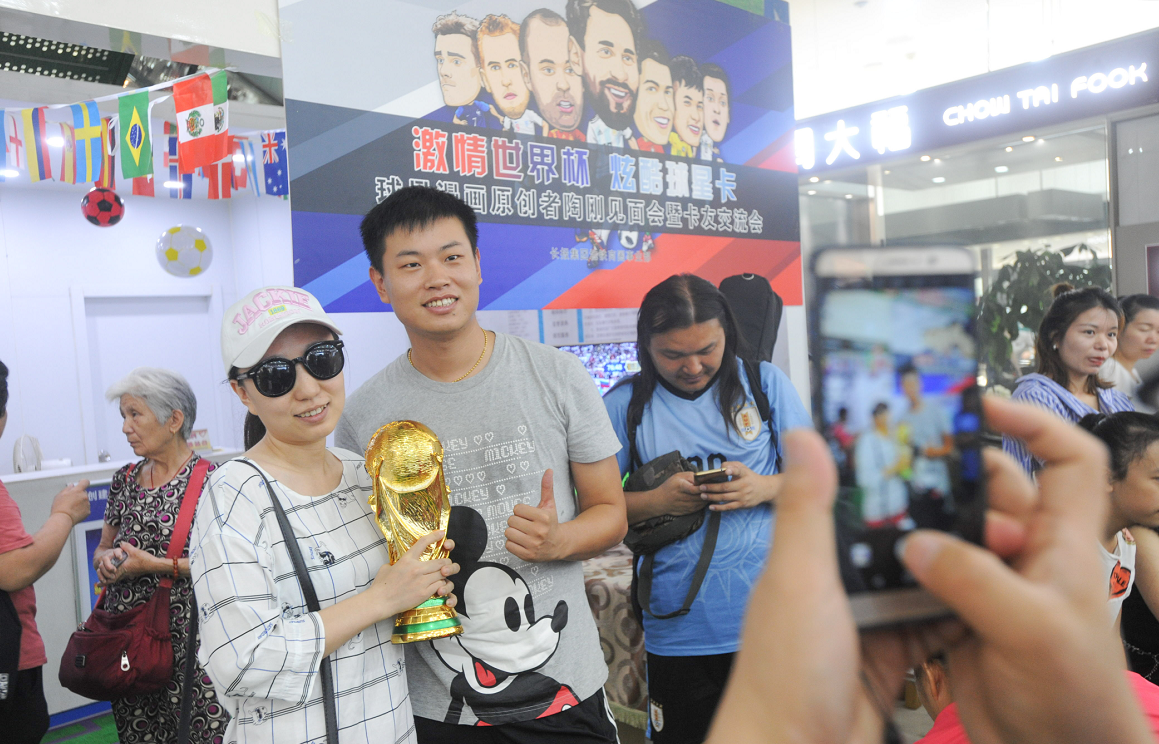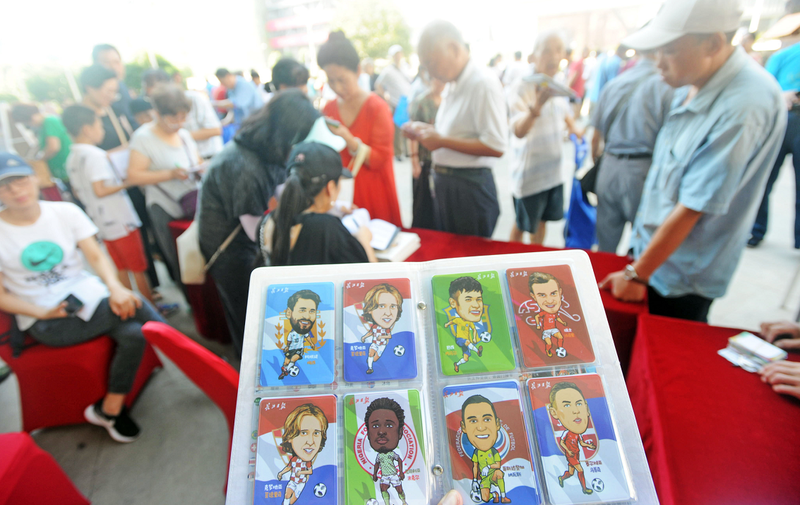 7月15日上午,街道口银泰创意城广场,32强球星卡套首发仪式现场。记者 苗剑 摄