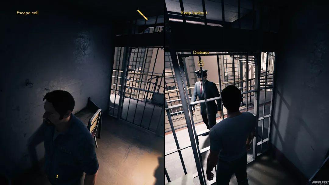 游戏故事讲述了两位蒙冤入狱的角色Leo和Vincent合作越狱并成功复仇的故事,两人的性格也是非常鲜明——一个稳重、一个激进,两人在面对同一问题时都会有不同的处理方式,而面对不同选择时,两名玩家需要协商并达成一致才能继续进行游戏,不过尽管处理方式和选择的分支路线不同,但并不影响剧情的走向。