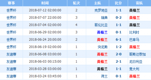 英格兰在处理顺风球时表现不够理想,淘汰赛阶段2次率先进球2次被扳平,包括被哥伦比亚头球绝平。三狮军团英格兰世界杯小组赛排名G组第2出线,相继淘汰哥伦比亚和瑞典,但不敌克罗地亚,本场不败*率赔**1.75。英格兰上轮在开场5分钟就取得进球的情况下加时1:2被黑马克罗地亚逆转,目送对手首次挺进世界杯决赛。