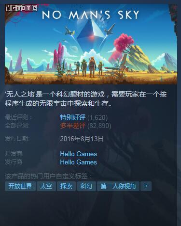 值得一提的是,《无人深空》目前正在 Steam 进行5折促销,仅售79人民币;而游戏最新30天的玩家评价已经上升至特别好评。再联系到游戏总监 Sean Murray 发博谈到自己曾经犯下的错误,并表示游戏后续还会继续更新,相信在工作室的不断努力下,玩家们对《无人深空》的评价还会进一步改观。