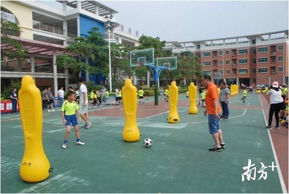 该校足球教师、曾在恒大足球俱乐部任职的彭修张表示,学校探索开展了普及性足球课、足球大课间、建设梯队(班级队、年级队、校级队、教师队、家长队)、开发了足球特色课程、搭建了完善的足球竞赛平台。同时,学校也配备了出色的足球场地,可以同时能满足足球教学、足球大课间、足球比赛等多项需求。