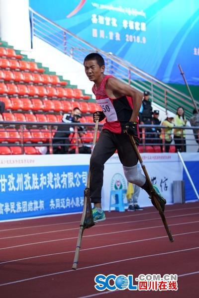 凉山代表团高脚竞速运动员沙雪峰(彝族)