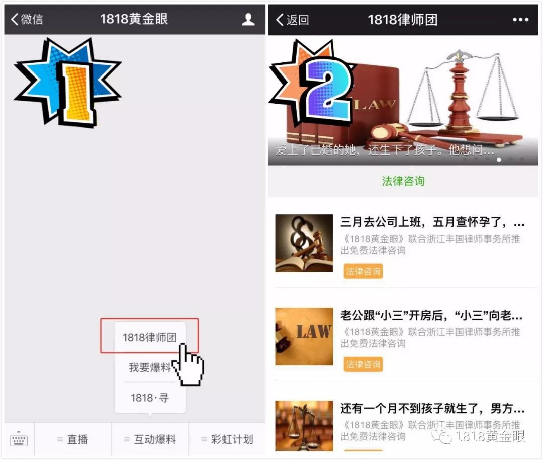 1. 请编辑“ 1818律师团+您的问题+联系电话 ,X女士/先生 ”发送至“ 1818黄金眼”微信公众平台