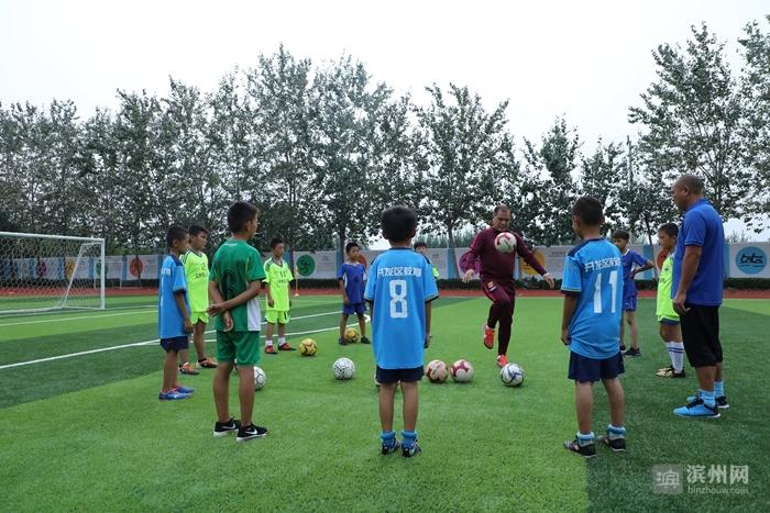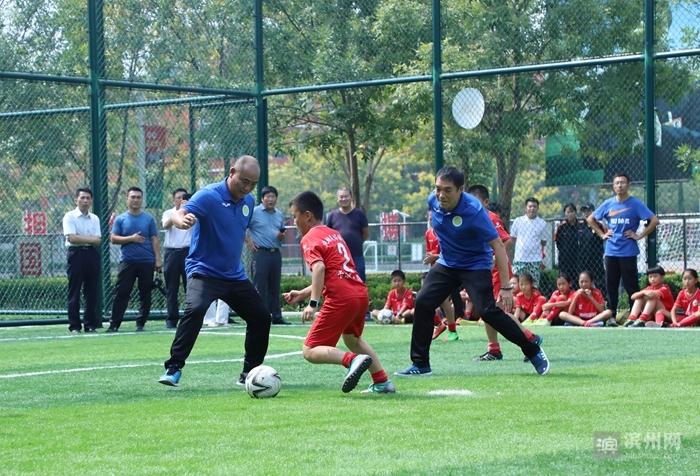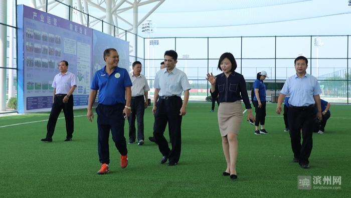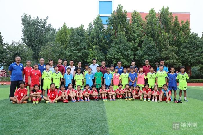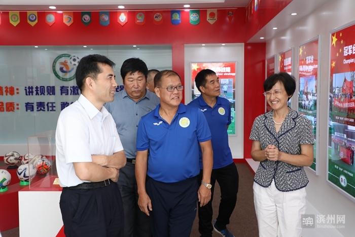 在沾化国际足球运动小镇,陈玉良一行对小镇的规划建设和运营情况赞不绝口,并表达了希望在球员训练等方面开展合作的意愿;随后,考察团还走进滨州实验学校、滨州经济技术开发区定吕小学,听取关于校园足球建设的介绍,亲自指导小球员训练,并上场与小球员切磋球技。