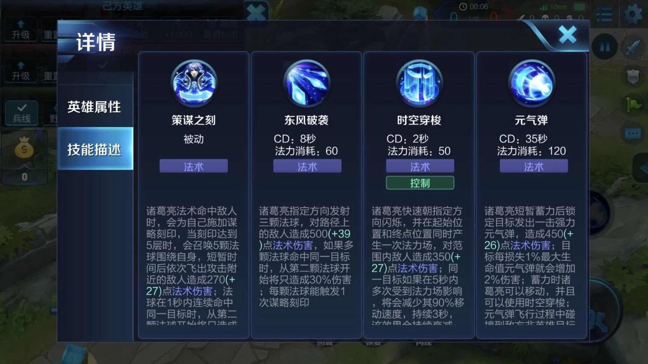 ①技能解析:诸葛亮一名老牌的法师英雄,相信大家都已经很了解他的技能了,我就直接略过那比较复杂的技能解析,跟各位重点说一下容易被轻忽的细节吧。