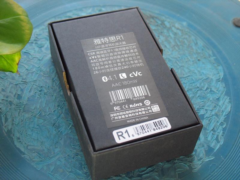 上图,从包装细节来看,雅特斯R1蓝牙耳放的包装盒纯黑色系,在盒子的正面有烫印的产品标识,可以看出这款蓝牙耳放的全称是“HIFI蓝牙耳机放大器”。