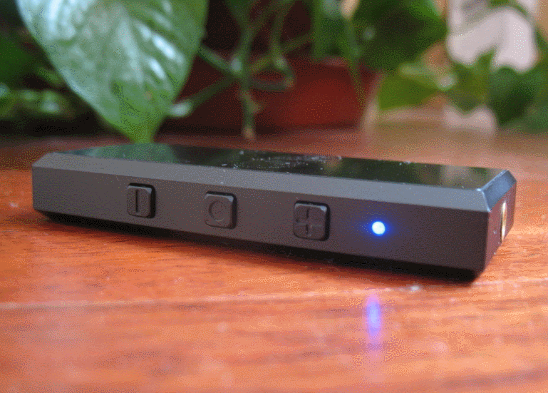 在开始测试之前,先按照说明书要求,给雅特斯R1蓝牙耳放充电。插入充电线后,可以看到机身侧面的指示灯亮起蓝灯,待充电完毕后,指示灯会熄灭。雅特斯R1蓝牙耳放既可以使用手机充电器充电,也可以使用PC上的USB口充电。