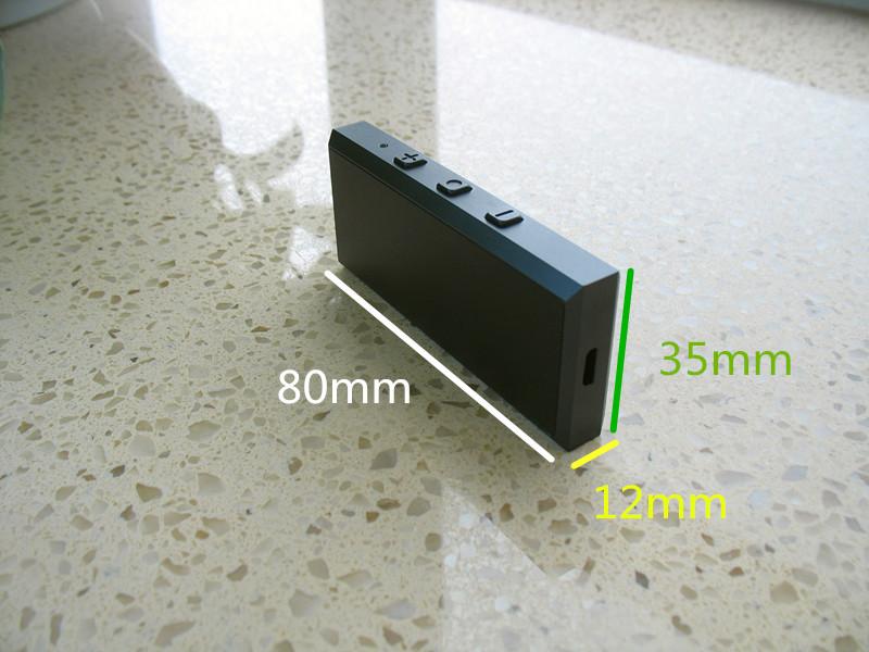 如上图,雅特斯R1蓝牙耳放整体机身尺寸为80mm(长) X 35mm(宽) X 12mm(厚),大小适中,怎么形容呢,看下图!