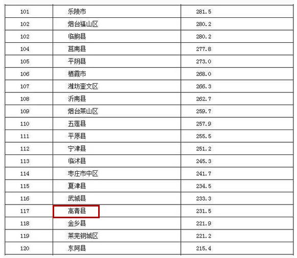 第62名博山区,390.5亿元。去年排名全省第61名,全区第5名。