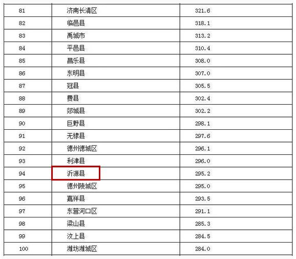第94名沂源县,295.2亿元。与去年相比,全省排名上升2位。
