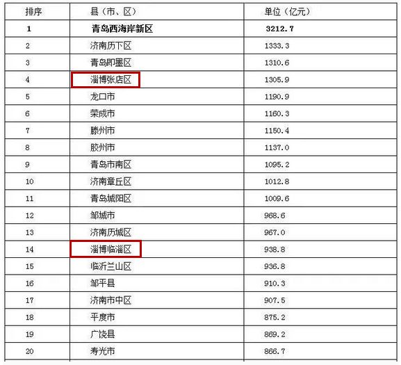 在全省GDP规模排名中,张店区在淄博市排名最靠前,为全省第4名,1305.9亿元,是淄博各县(市区)中唯一入围前十名的区县。张店去年排名全省第2名,1209亿元。
