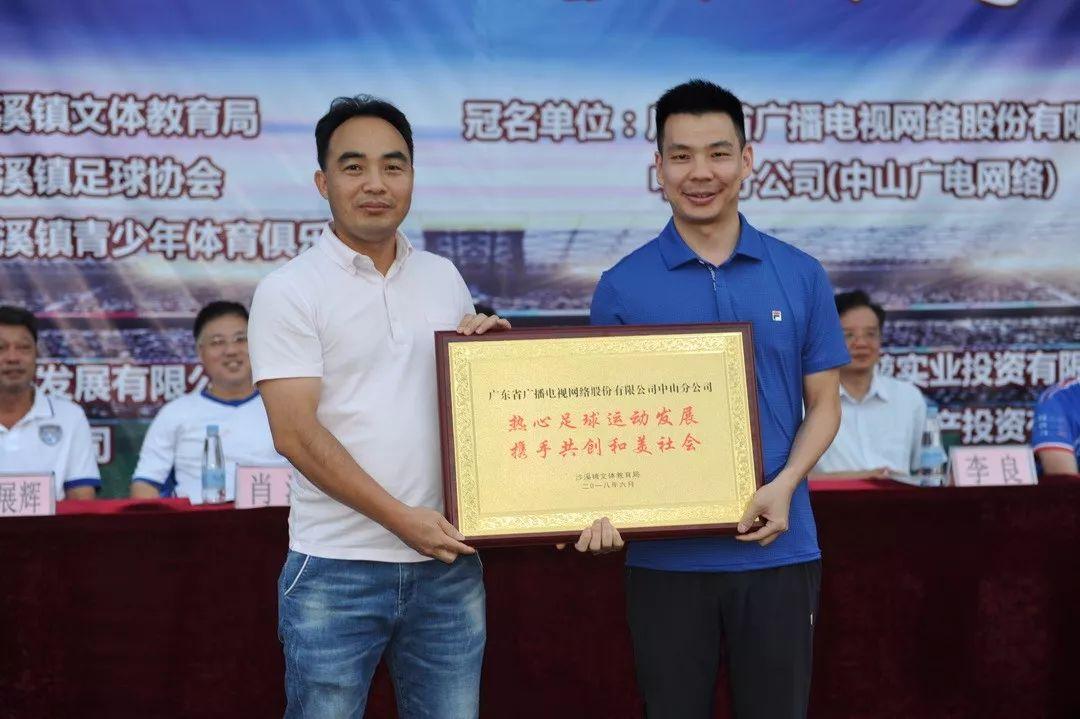 沙溪镇*党**委委员、副镇长杨炯乐为赞助单位授牌,广东广电网络公司中山分公司市场营销总监杨万青接受了牌匾