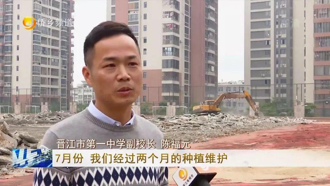 晋江二中副校长 陈维新:预计草坪施工在5月底能够结束,完了以后还有一个半年期的草坪的维护。