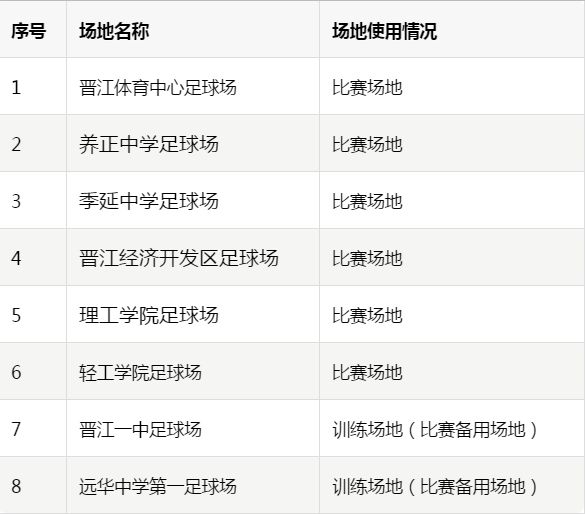 2018年“国际大体联世界杯及亚洲大体联亚洲杯中国大学生足球选拔赛”、2018年“亚洲大体联亚洲杯”安排6个比赛场地和7个训练场地,由于场地需求数量增加,增加泉州理工学院、泉州轻工学院两个学校的足球场为赛事场地。目前,新建、改建、扩建场地正全力推进,所有场地建设(草坪)均按照国家1类场地标准建设。