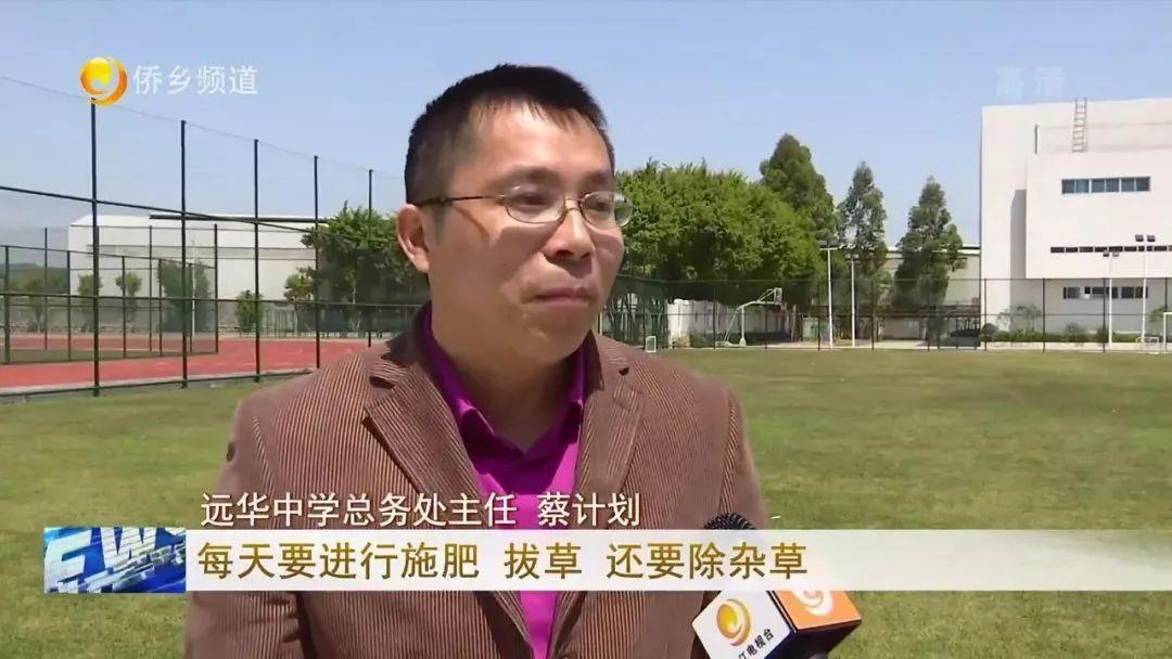 远华中学总务处主任 蔡计划:我们引入专业的团队来养护,每天要进行施肥、拔草,还要除杂草,以达到我们大体联训练场地,还有2020年世中运比赛场地的要求。