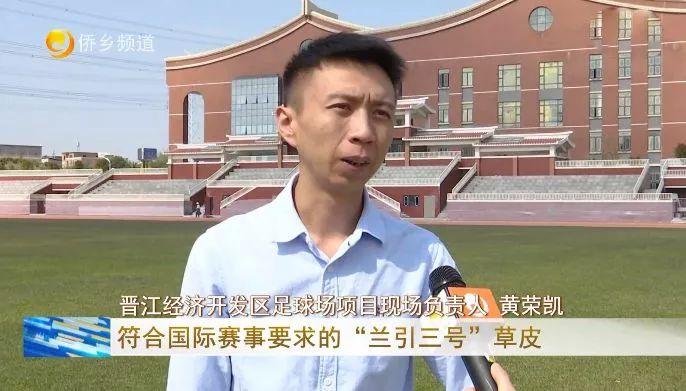 晋江经济开发区足球场项目现场负责人 黄荣凯:足球场在建设前期就已经引进符合国际赛事要求的“兰引三号”草皮,配备了一个自动喷灌系统,每天不定时地进行喷灌,安排人员在现场清理杂草、杂物,病虫害防护等。