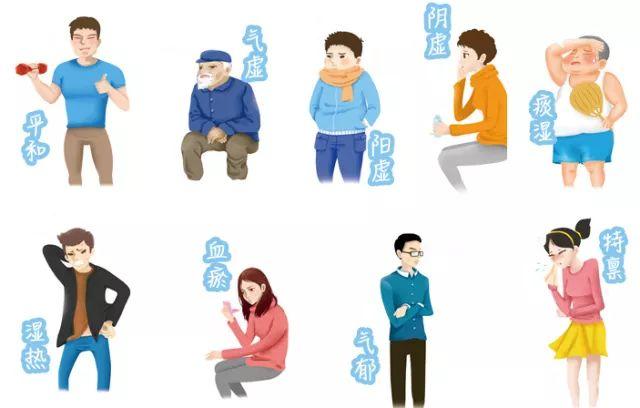 气虚质(疲乏):先天条件不足,后天调养不好,容易劳累,说话没力气,性格内向,容易出汗,容易感冒。