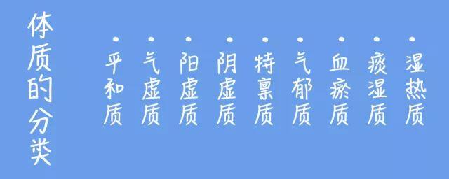特禀质(过敏):先天不足,或遗传导致,易过敏体质,大多伴随遗传病、身体缺陷,比较悲剧的体质。