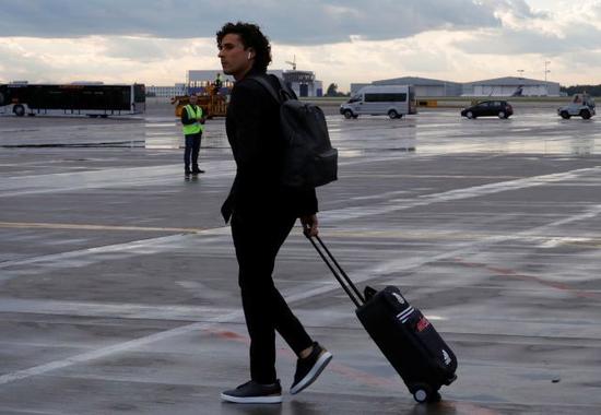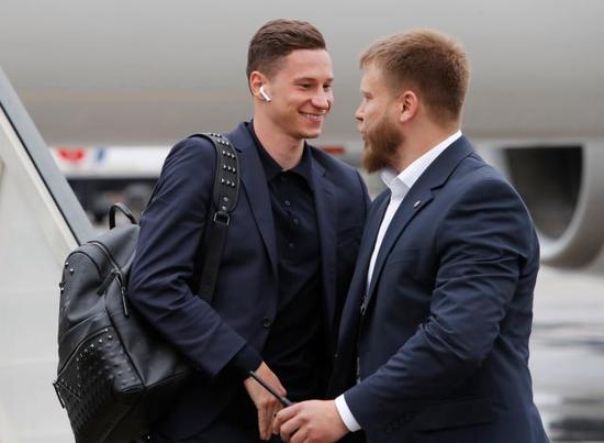 德国中场球员朱利安·德拉克斯勒(Julian Draxler)也戴着苹果AirPods无线耳机走下飞机。
