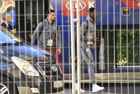 英格兰队的杰西·林加德(Jesse Lingard)头戴AirPods无线耳机出现在球队半决赛前训练场。