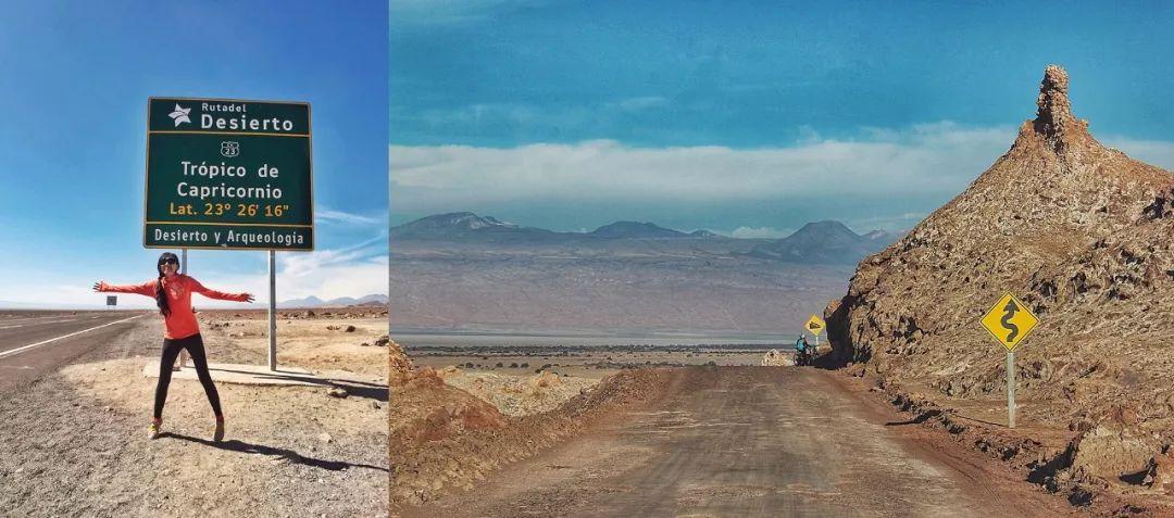 在眼睛半开半闭中,Maca 不知不觉地在智利23 号公路上穿过了南回归线。我顿时清醒了,让她再倒开回去,我必须得重新感受一下步行穿过南回归线的体验。