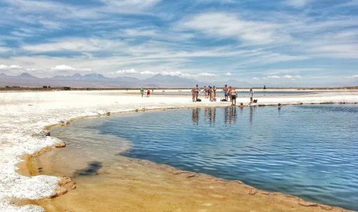 我们在比太平洋水咸七倍的塞歌湖(Laguna Cejar)氽了一下身体,体会浮力好比死海的盐湖