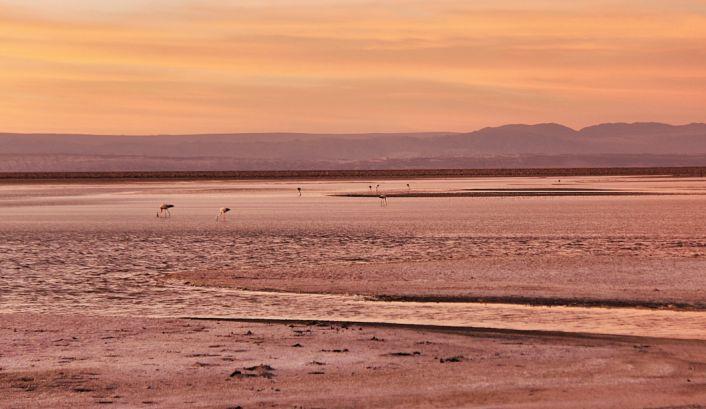 沙漠也有绿洲,它通常会猝不及防的出现:我们经过绸缎面质感的高原湖,有火烈鸟从盐滩上结队起飞