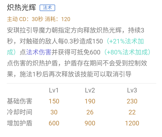 辉月增强了安琪拉的自保能力,让她可以躲避致命伤害,还可以提供法术强度和冷却缩减。