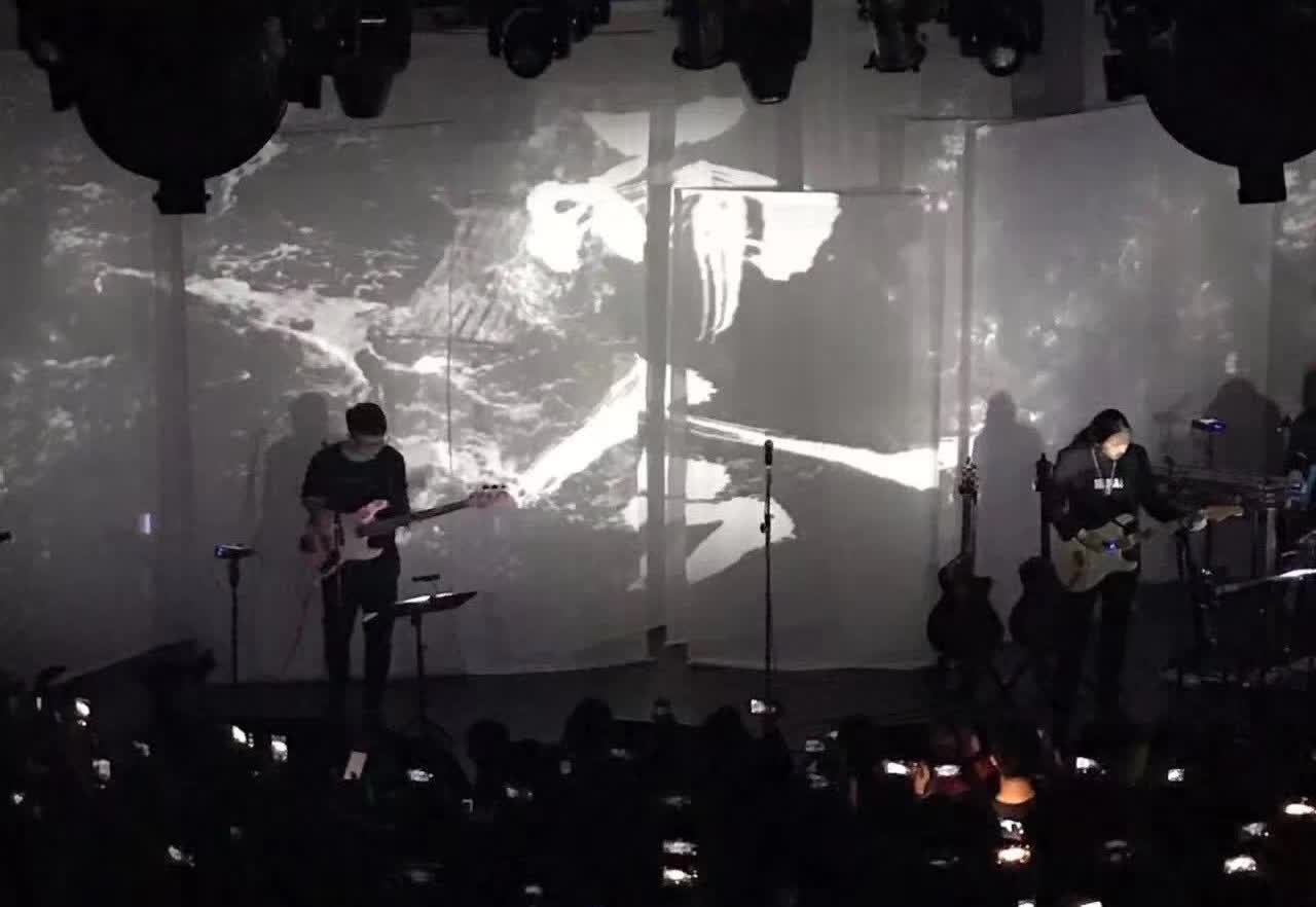 几首经典老歌过后,谢天笑开口说道:“下面是新专辑的歌曲,《那不是我》。”对于这张新专辑,谢天笑曾说:“别用耳朵听,用心感受。”与之前歌曲的倾泻爆裂不同,新专辑的歌曲加了交响乐的编排与电子元素,多了几分优雅。现场观众也确实不再像从前那样站立挥臂,全部坐在位置上聚焦期待着新歌的演绎。谢天笑几乎一气呵成唱完了新专辑中的全部歌曲。