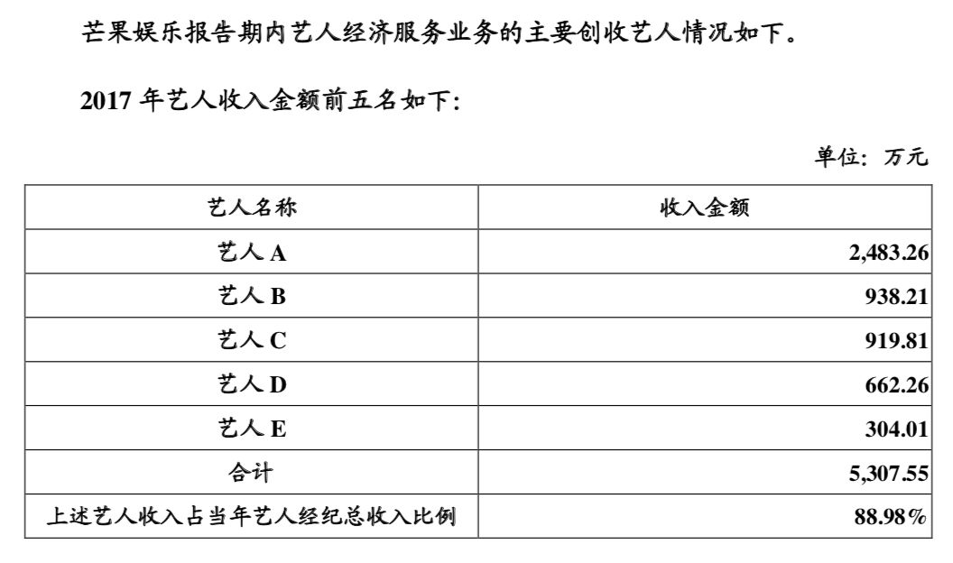 芒果娱乐的第三项主要收入来源是艺人经纪。通过各种综艺节目,张大大、唐禹哲、佟梦实、李菲儿等艺人知名度不断提高,芒果娱乐的艺人经纪收入从2015年的1011.75万增长到2017年的5964.97万。