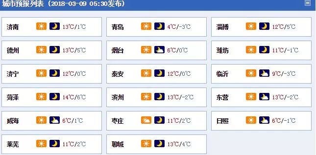 今天全省天气晴到少云,最低气温-3℃左右,最高气温13℃左右。