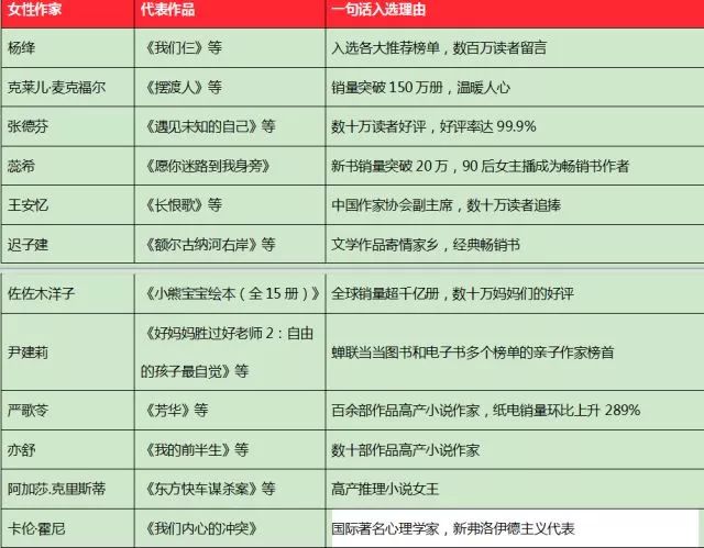 ·当当发布了2017年备受欢迎女性作家名单,并向广大女性读者推荐女性阅读好书。杨绛、王安忆、迟子建、严歌苓、阿加莎.克里斯蒂等国内外名家入选。