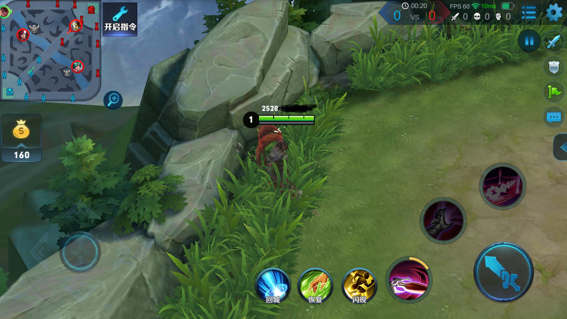 前期的吕布战斗力非常弱,但是吕布却非常适合在上路抗压,有个小技巧,塔下用二技能吸三个小兵,然后用一技能加两下普攻就可以清一波兵,记住一定要猥琐等待队友的支援,如果队友一直不来,以清兵为最优先原则。